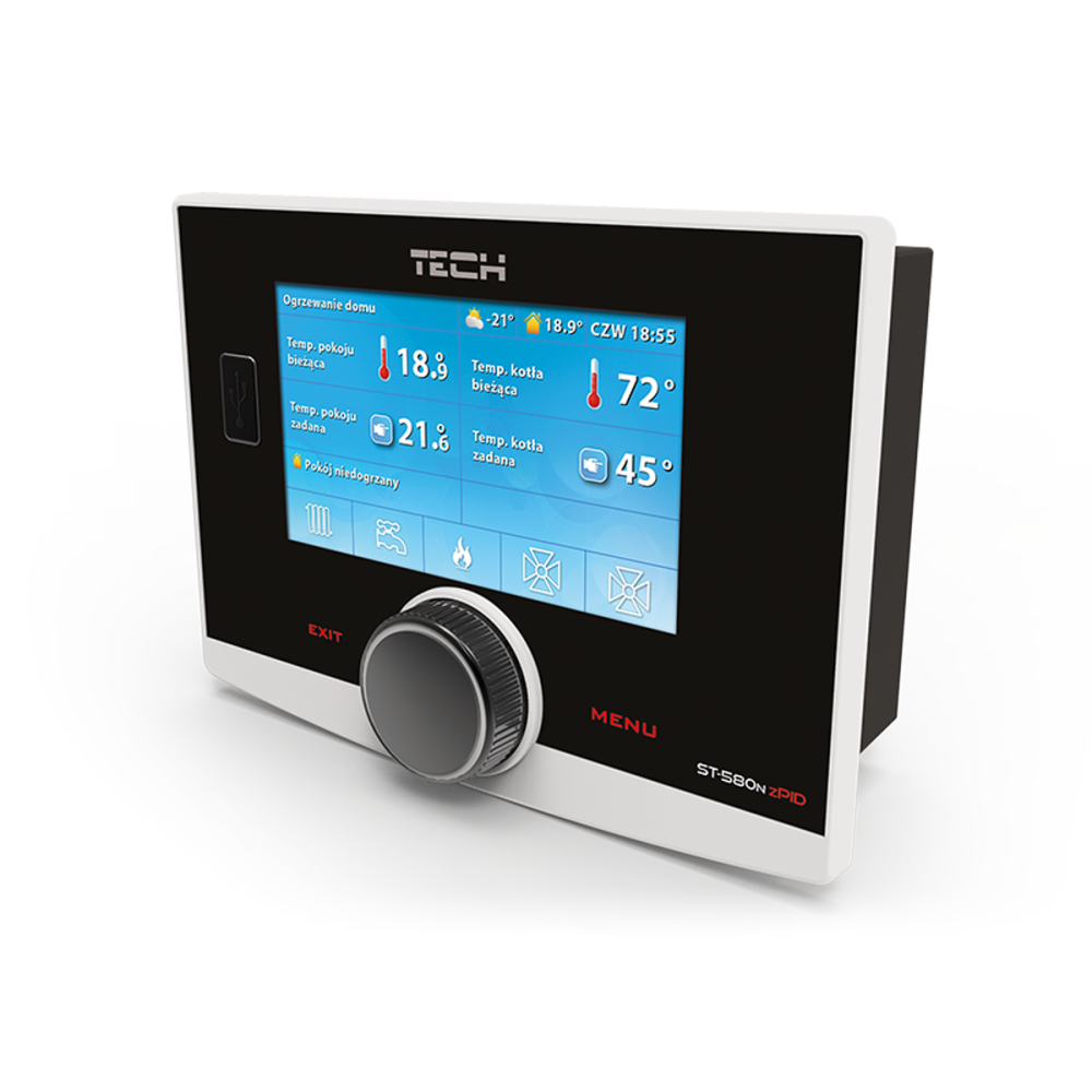 Автоматика ST-580 zPid с датчиком дымовых газов это высококлассная техника для управления котлами с автоподачей твердого топлива шнековым или поршневым способом. Основная задача контроллера ST-580 zPid контролировать работу вентилятора и питателя автоматической подачи топлива.