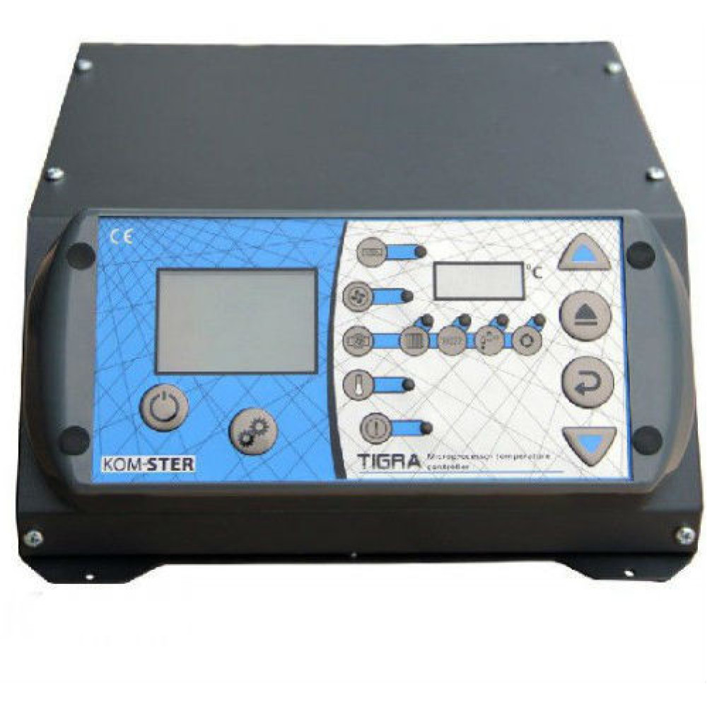 Дополнительно контролируются функции часового пояса, режима день и ночь, а также новый алгоритм управления вентилятора позволяет сэкономить до 15% топлива. Вывод для термостата обеспечивает удобство и комфорт при использовании комнатного регулятора. Так же автоматике TIGRA возможно подключить дополнительные пульты дистанционного управления.