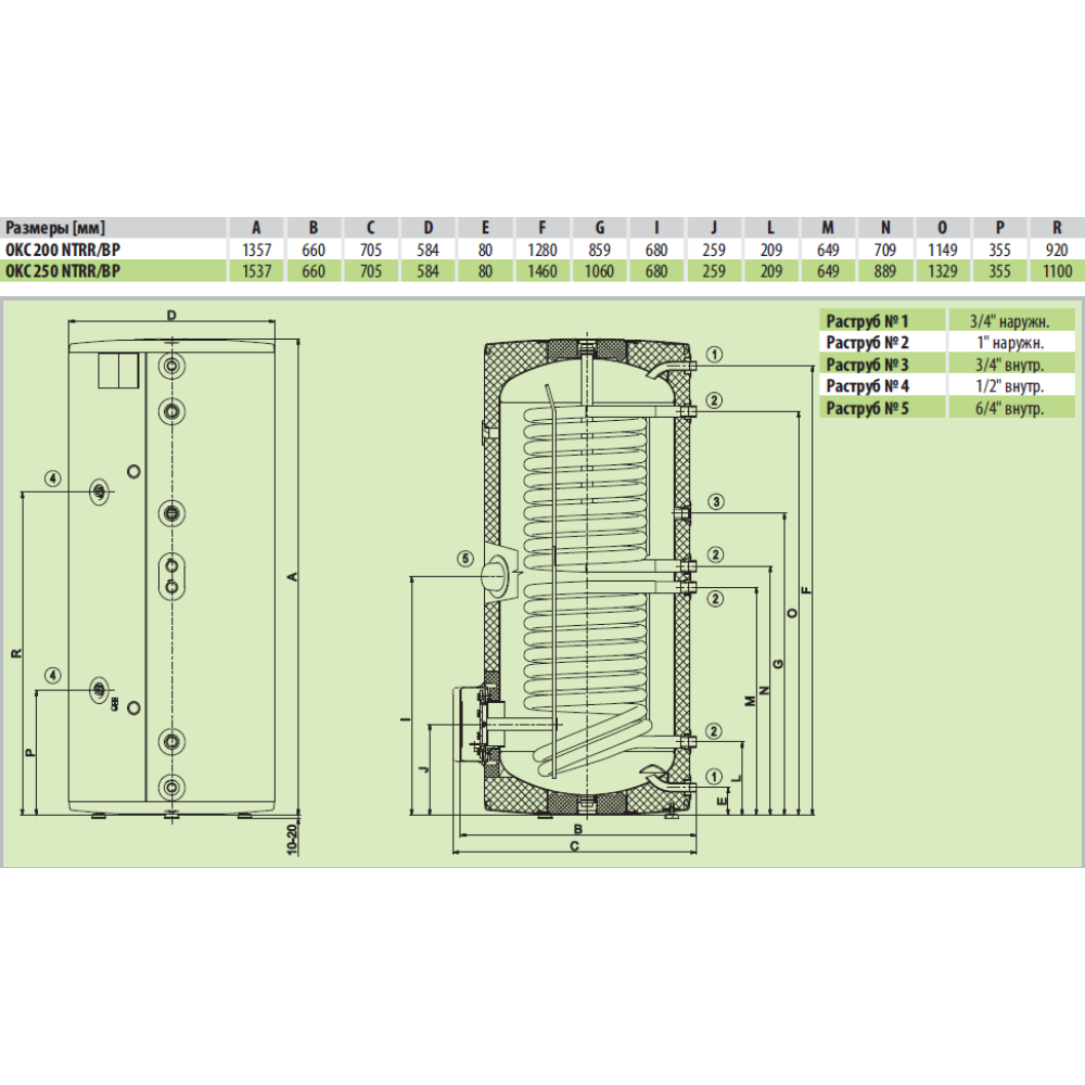 Тип | Ед. изм. | OKC 200 NTRR/BP | OKC 250 NTRR/BP | OKC 300 NTRR/BP |