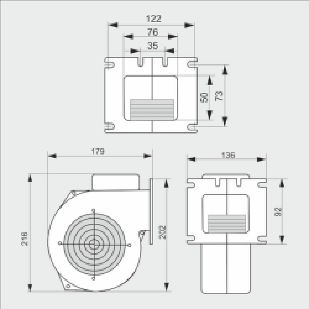 Радиальный вентилятор WPA 120 PK используется для подачи воздуха в топку твердотопливного котла мощностью до 50 кВт, оборудован клапаном-заслонкой и дифузором (шторкой).