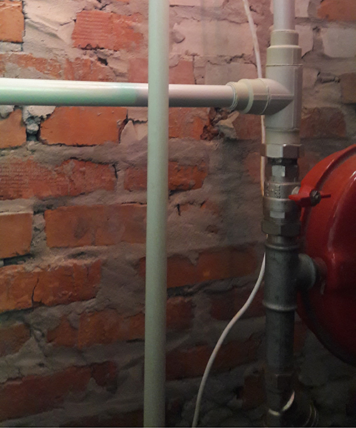 Данный объект расположен в поселке городского типа Слатино. Установлен котел польского производителя Ermach – 16 кВт. Обвязка котла выполнена пластиковыми трубами. Установлен расширительный мембранный бак, группа безопасности. На обратном трубопроводе смонтирован циркуляционный насос, на подающем трубопроводе стоит трехходовой смесительный клапан. Установленный котел обслуживает три высокотемпературных отопительных контура.
