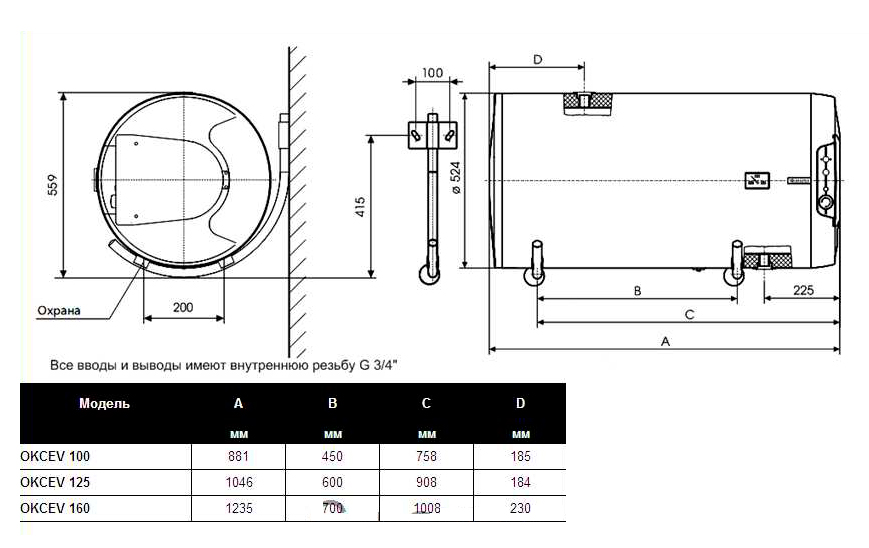Это навесные бойлеры горизонтального типа. Подключение электрики справа. Нагрев воды происходит с помощью керамического нагревательного элемента, управление которым обеспечивается двумя рабочими термостатами: основным и предохр¬анительным.