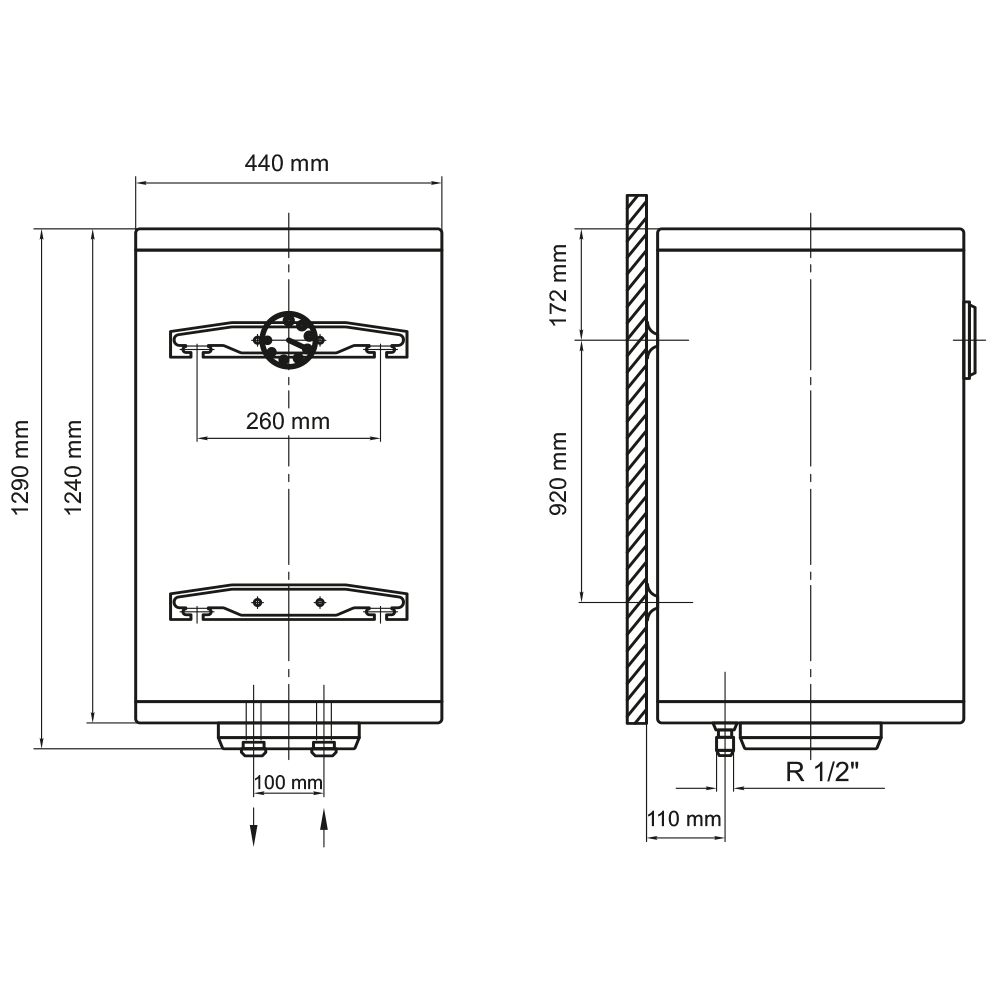 Данные модели круглой конфигурации ARTI WHV L/1 и ARTI WHV Dry L/2 являются моделями вертикальной установки, управление баком находится снизу. Модели ARTI WHH L/1 и ARTI WHH Dry L/2 устанавливаются горизонтально, управление баком находится справа. Все модели навесные, с механической системой управления температурными параметрами.